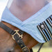 The Equinavia Algard Soft Mesh Fly Mask features a double darted face screen that effectively shields your horse from flies while ensuring clear vision. The soft and flexible mesh material is used at the crown, ears, and throat latch for a comfortable fit. It also includes breathable perforated padding at the nose and trim, ensuring that your horse stays cool and comfortable. The mask is equipped with two adjustable heavy-duty hook and loop closures at the throat for a secure and personalized fit. Additionally, it provides UV protection with a UPF rating of 45.